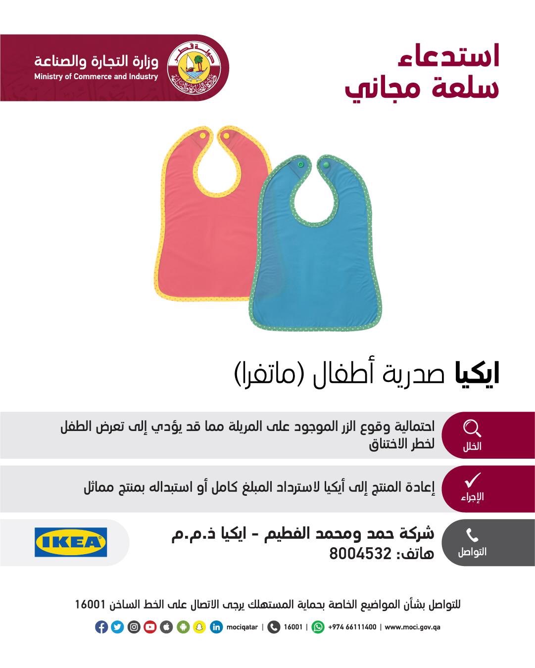 وزارة التجارة والصناعة على تويتر استدعاء سلعة مجاني ايكيا صدرية أطفال ماتفرا free product recall for ikea children s bib matvra